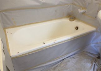 Once fully prepared, we apply a 2-part bonding agent to the entire surface. After the priming stage is complete, the surface is sprayed with a high-tech acrylic urethane compound with the assistance of a fine mist HVLP spray gun. When hardened, the surface will look very glossy and like new. With proper care and maintenance, you will be able to enjoy your reglazed fixture for many years.